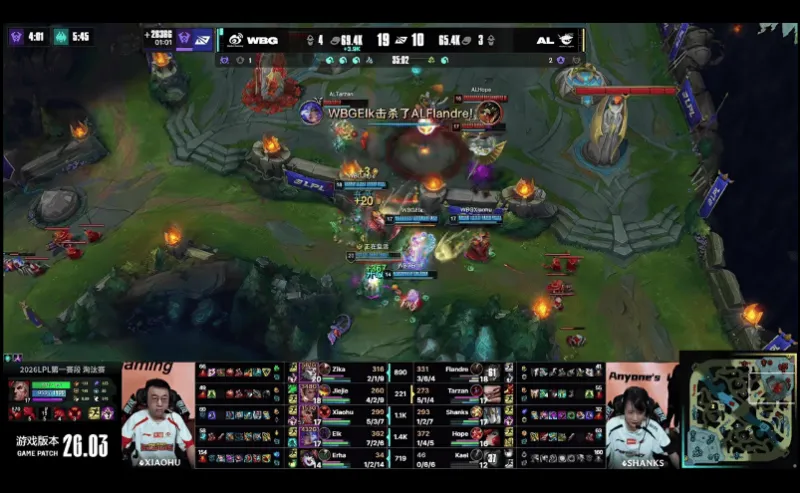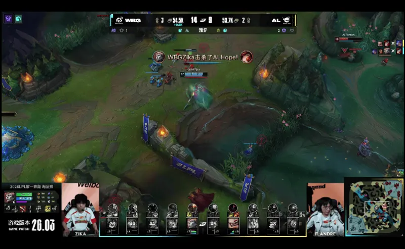 23分钟,WBG中路发难,突进越塔击杀AL双C